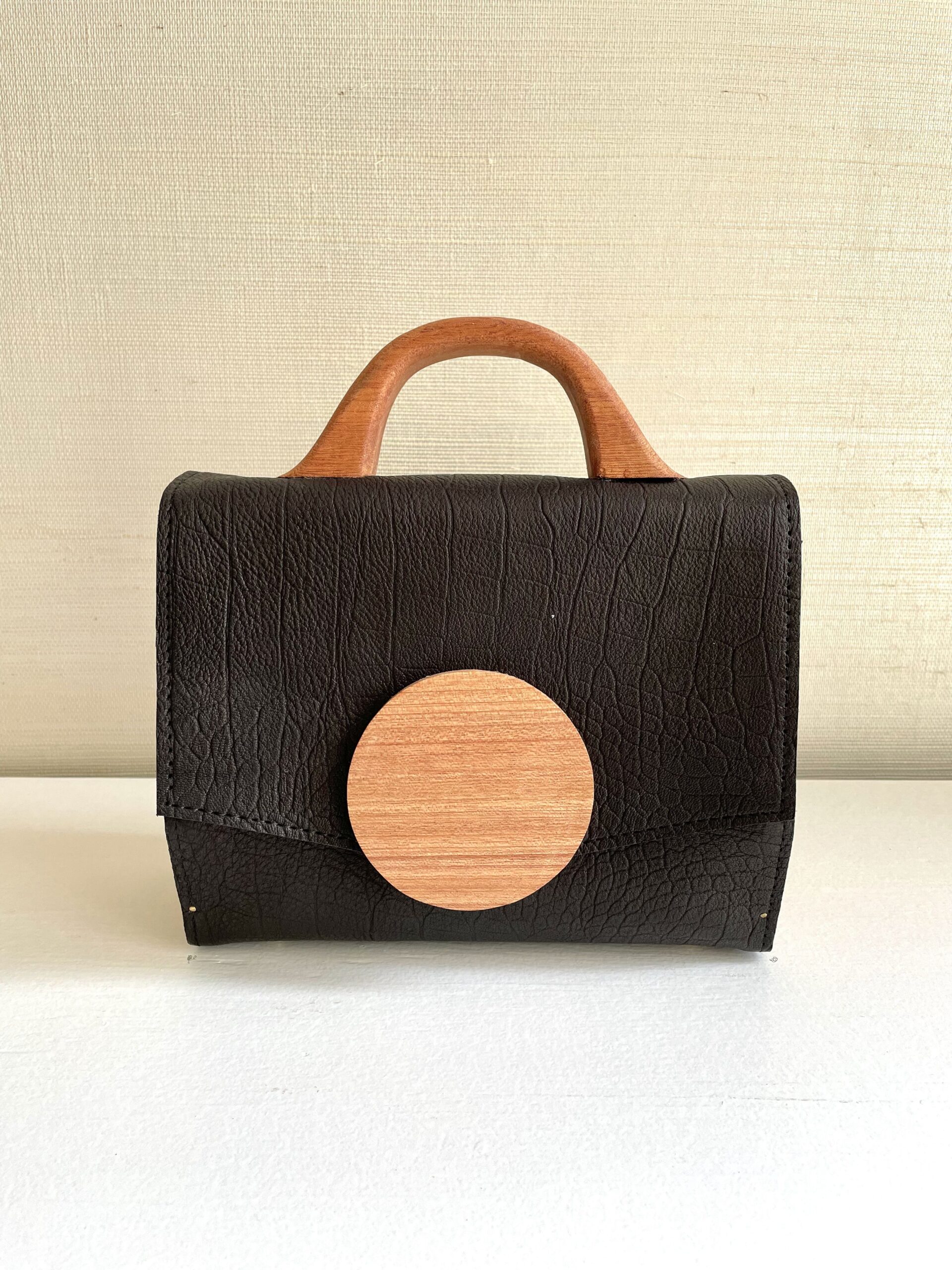 This understated, chic stunner combines quality materials and craftsmanship with timeless design to add an elegant touch to your outfit of the day. Featuring black crocodile embossed leather and wood details, this everyday handbag is structured, elegant, and roomy enough to fit all your essentials. Carry it by its top handle or as a shoulder bag with a detachable chain.