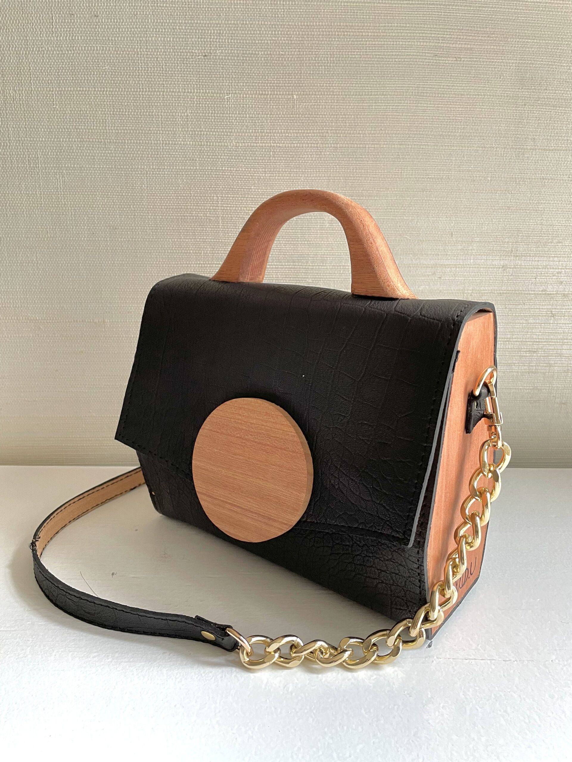 - Top handle and detachable gold chain